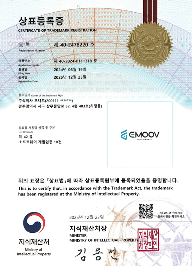 EMOOV 상표 등록증