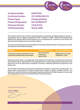 - OCPP 인증 취득으로 표준 프로토콜 기반 상호운용성 확보